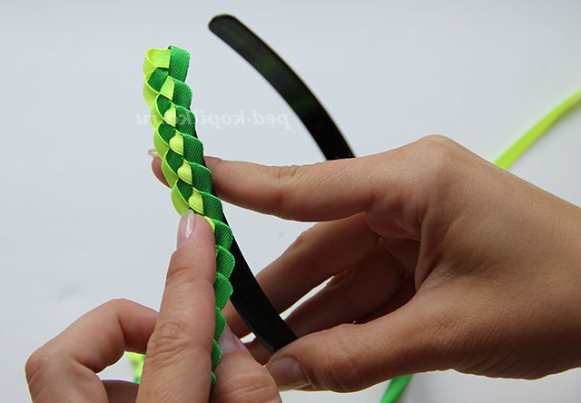 6) Далі повторюємо пункт 4-5. Плетемо косу довжиною, рівній довжині обідка.
