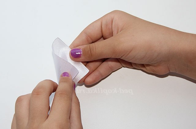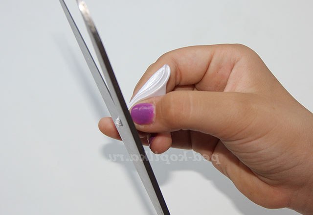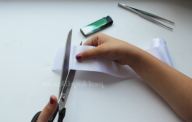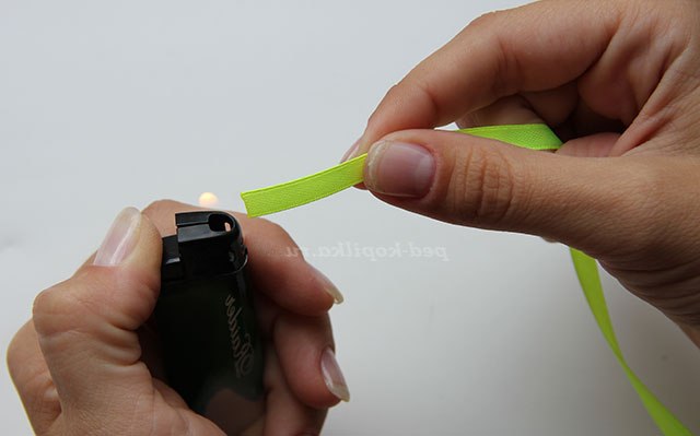 1) Обпалюємо краю тонких атласних стрічок, щоб не обсипалися.