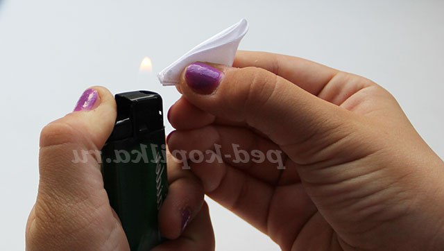 13) Обрізані краї обпалюємо запальничкою.