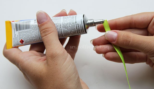 2) На вивороті стрічок капаємо по краплі клею.