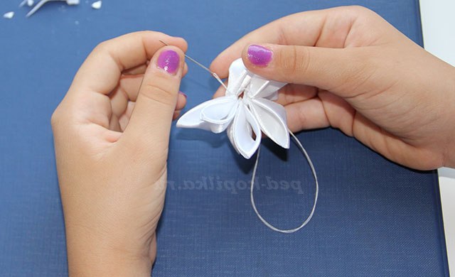 18) Голкою з ниткою з'єднуємо пелюстки в квітку.