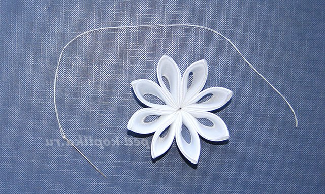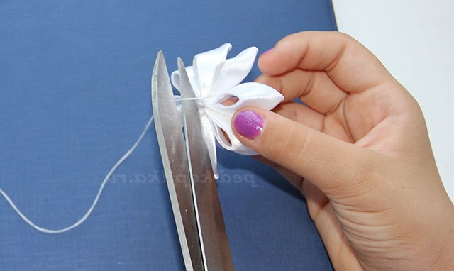 17) Сполучені кінці пелюстки злегка обрізаємо ножицями і обпалюємо.