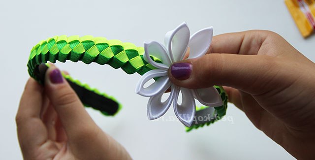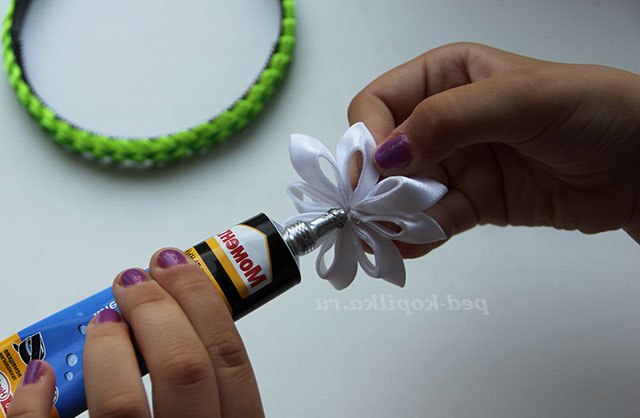 19) Краплю клею капаємо на виворіт квітки і кріпимо його до обідка.