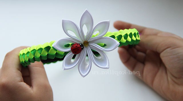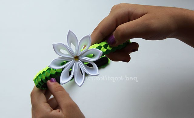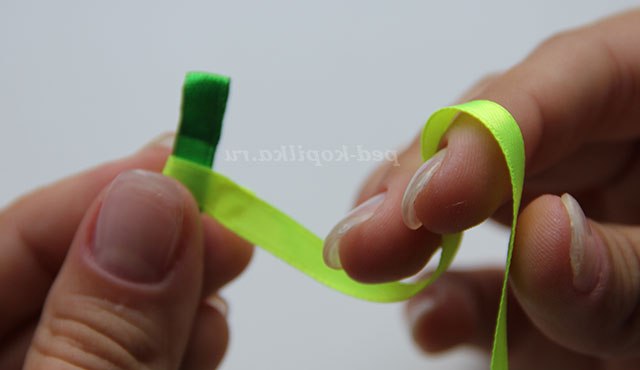 Злегка підтягуємо світлу стрічку до упору з темно-зеленою.