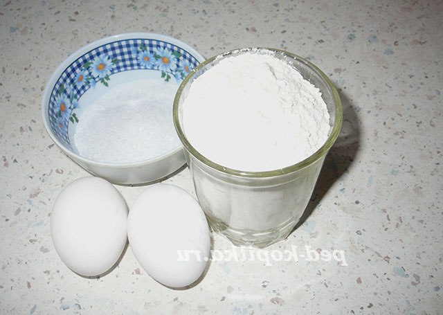 Змішати склянку борошна з 2 столовими ложками дрібної солі, додати 2 яєчних білка і замісити тісто, поки не стане крутим, як на локшину, в кінці замісу додати десертну ложку рослинного масла (тісто стане більш еластичне і не буде прилипати до дошки і рук).