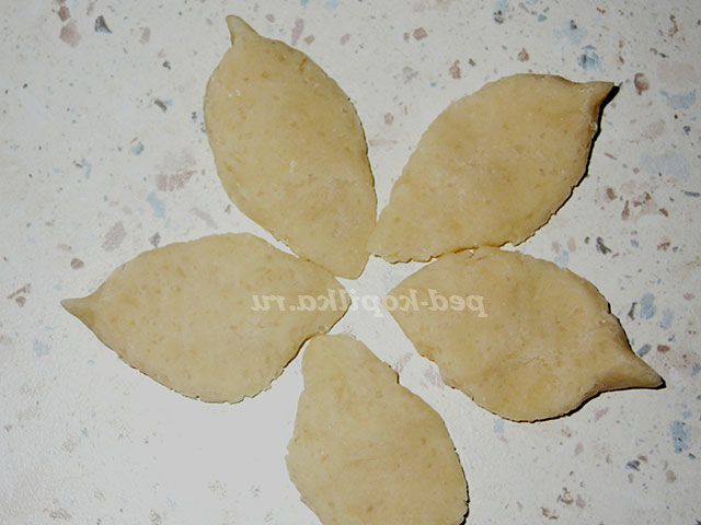З кожної частини формуємо овали, сплющує їх і защипуємо куточки.