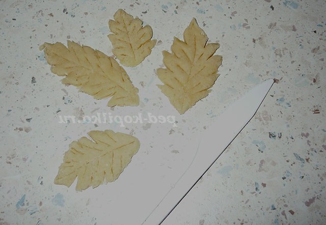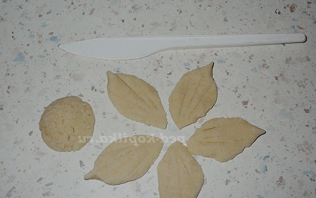 Листочки формувала так само, як пелюстки, але по краях робила надрізи.