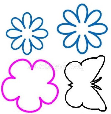 9. За трафаретами квітів і метелики вирізати з кольорового паперу 6 великих ромашок, 4 маленьких ромашки, 1 квітка жовтого кольору, а так само метелики червоного і синього кольору.