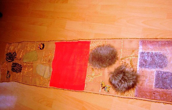 Розгорнута мочалка - дрібна сітка, сліди з хутра.