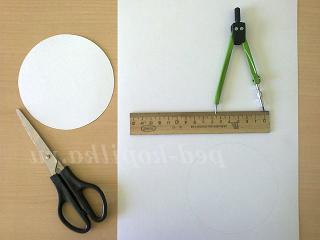 1. Вирізати з білого картону круг радіусом 5,5 см - це середина квітки.