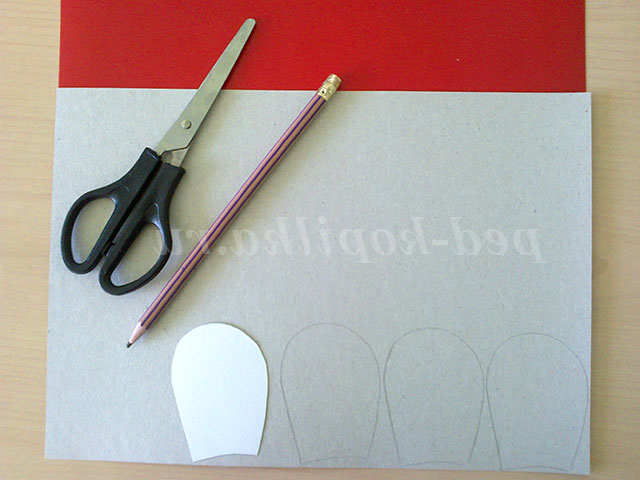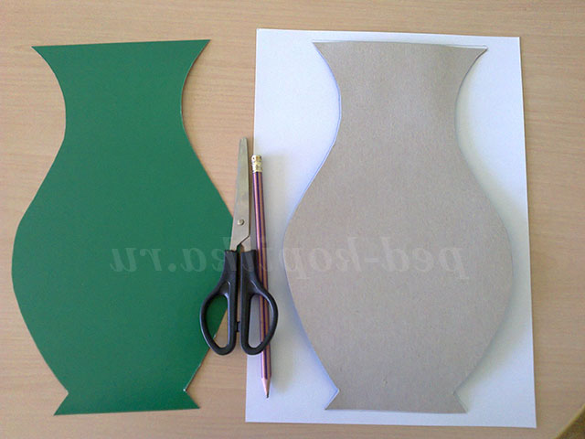 8. На білому і кольоровому картоні обводимо за шаблоном і вирізаємо дві деталі вази, отримані деталі склеюємо по краях, залишаючи отвір у верхній частині вази.