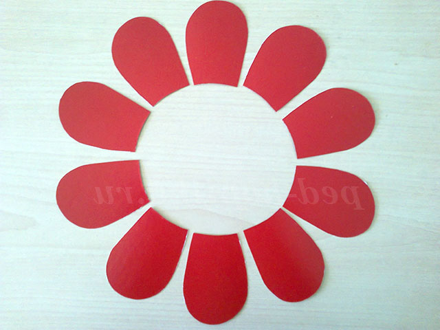 2. На кольоровому картоні обводимо за шаблоном пелюстки квітки.