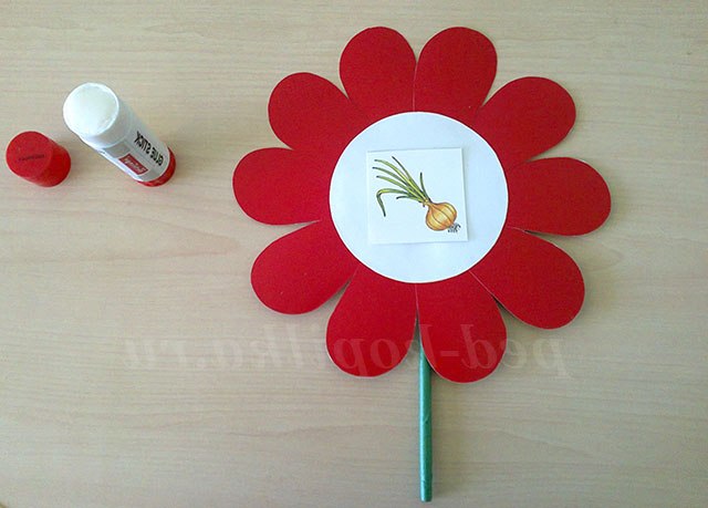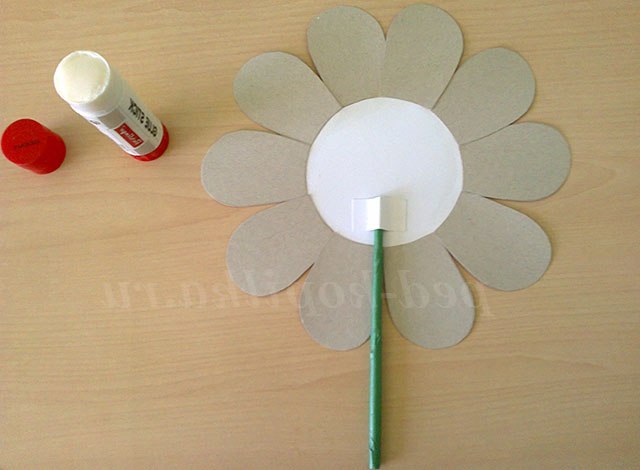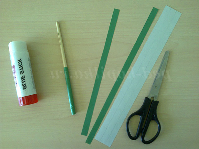 5. Дерев'яну паличку (можна від пензлика) обклеюємо зеленої кольоровим папером, вийшов стебло.