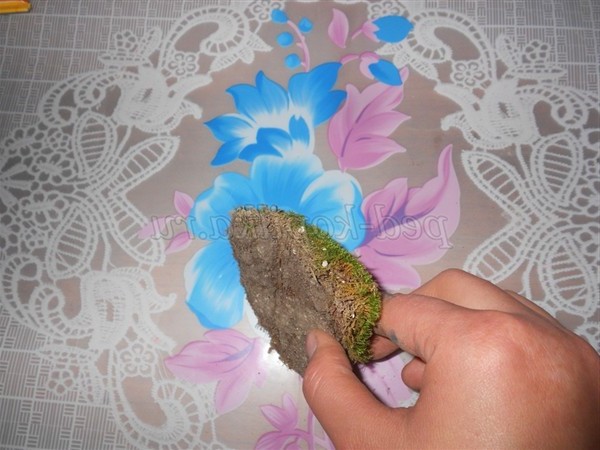 1. Очищаємо мох від різного сміття, обов'язково залишаючи при цьому на його зворотному боці трохи землі