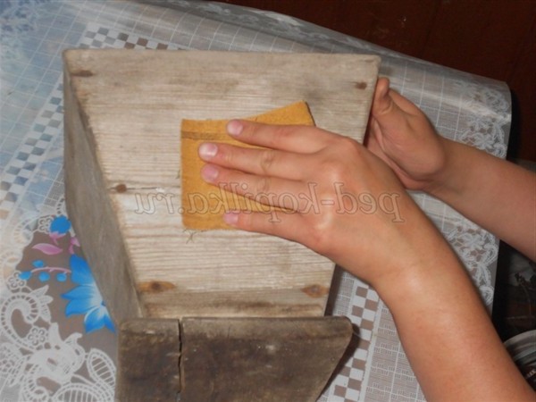 2. Зачищаємо наждачним папером дерев'яну поверхню скриньки