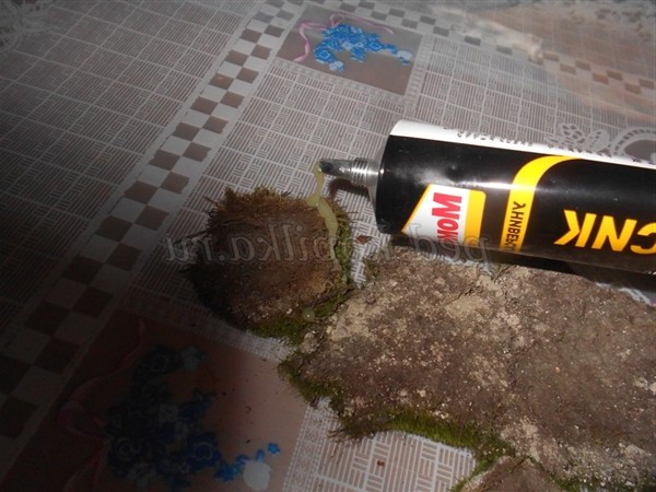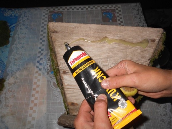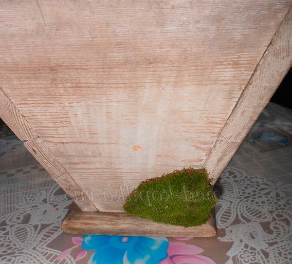5. Знизу приклеюємо невеликий шматочок моху до скриньки