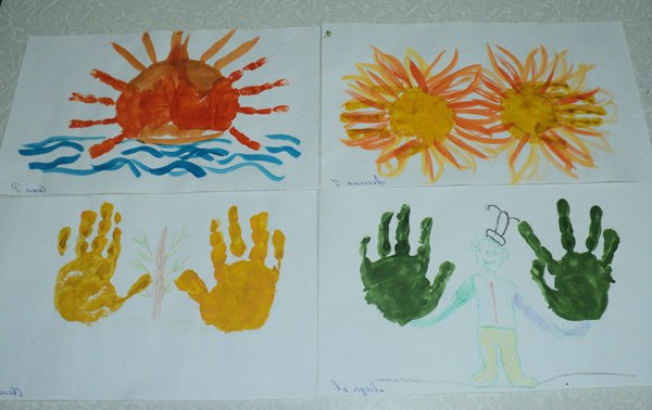 Я вам пропоную зараз помалювати, але підключивши фантазію. Поки звучить музика, расколдуйте відбитки, які приготували ваші діти.