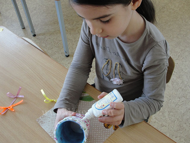 6. Декорувати наш стаканчик можна бантиками зі стрічок, стразами, гудзиками, квітами і т.д.