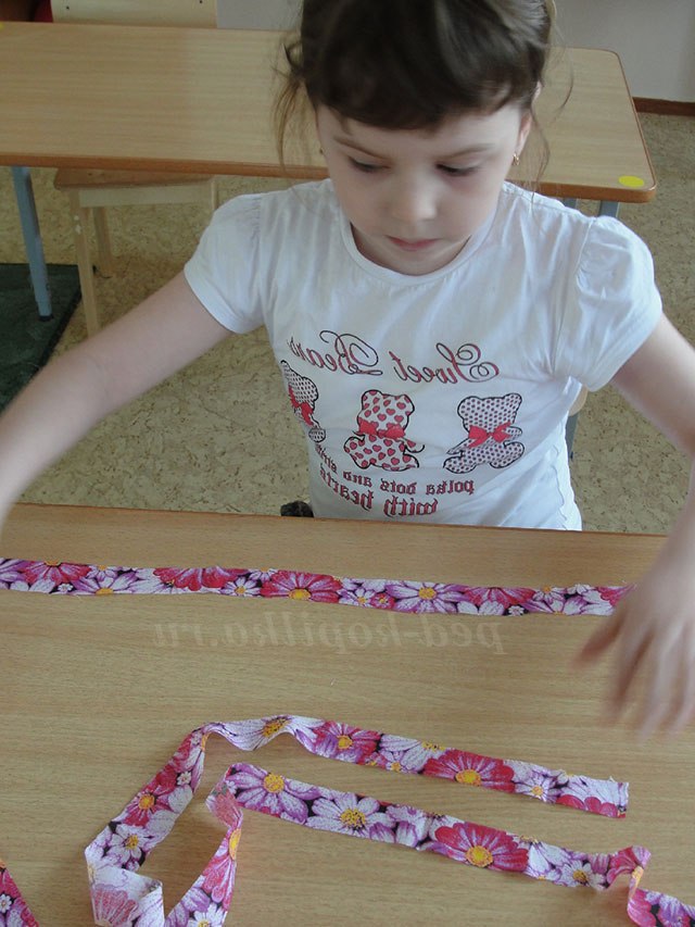 1. Розрізаємо тканина на смужки шириною 2 см, довжиною 50 см (щоб дітям було зручно плести).