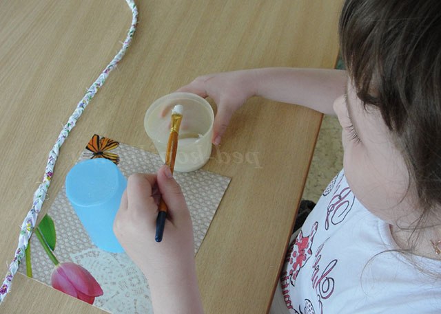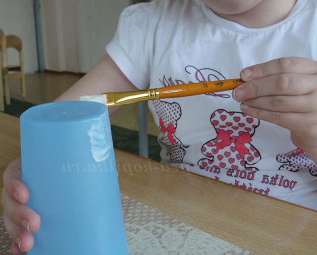 4. Пластиковий стакан або одноразовий стакан товстим шаром намазуємо клеєм ПВА.