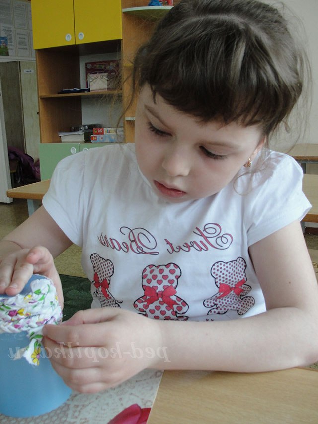 5. Туго намотуємо на підготовлений склянку кіски з тканини.