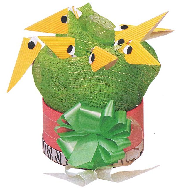 6. Далі скористайтеся пакувальним матеріалом для оформлення букетів. Поверніть його пухким рулоном і вставити в гніздо.