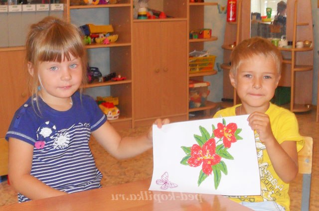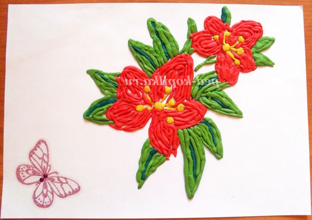 Розглядали з дітьми квіти на ділянці: троянди, лілії, півонії. Склали вірш, а потім вирішили створити незвичайний квітка з пластиліну. Діти назвали свою роботу «Аленький цветочек».
