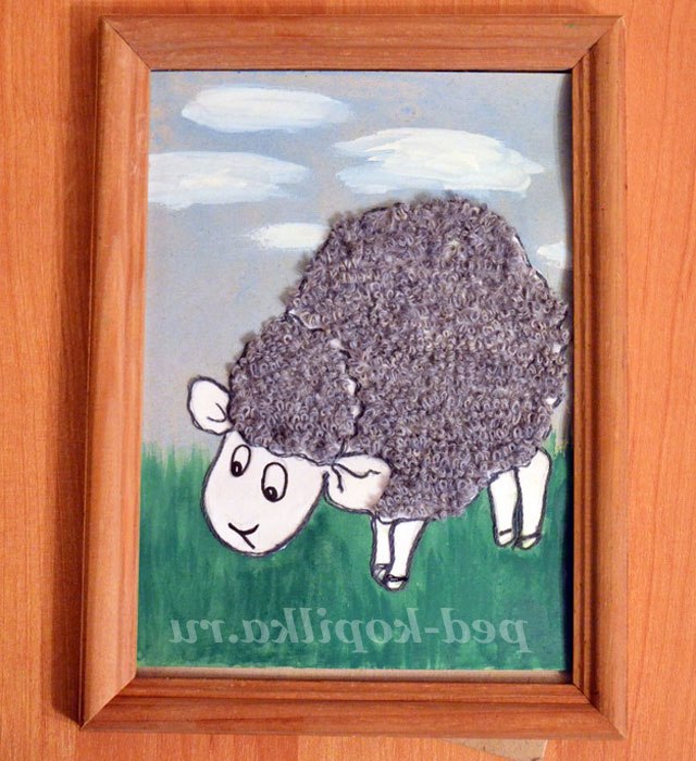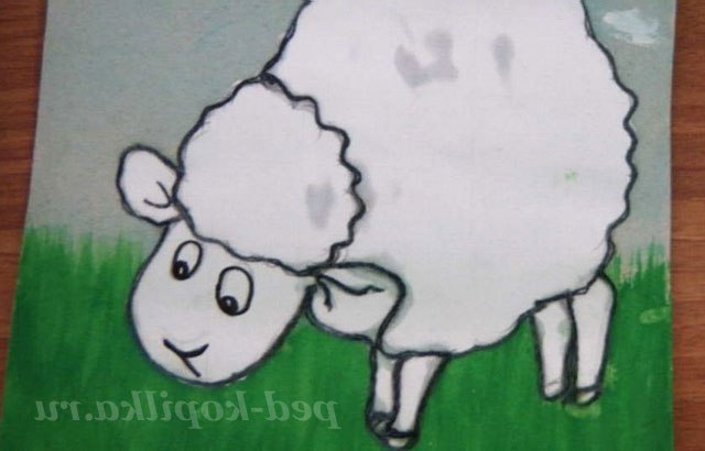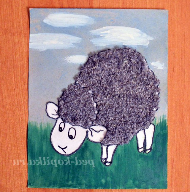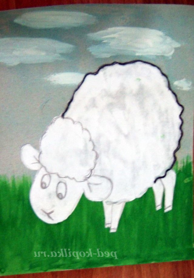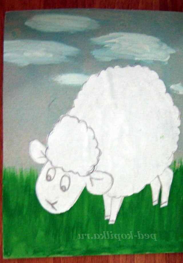 2. Приклеїти овечку на фон.