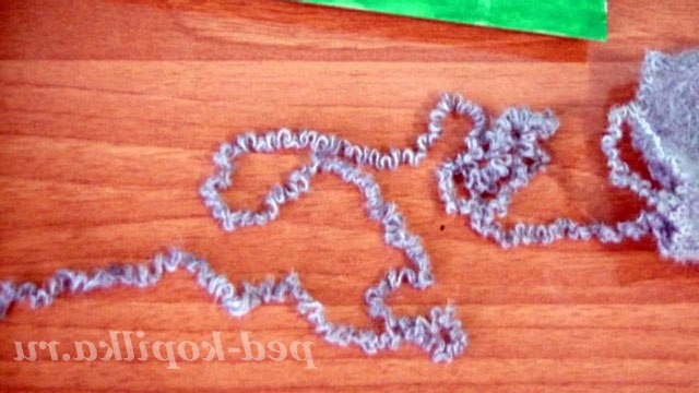 4. Розпустіть на нитки трикотажне полотно. Такі нитки будуть хвилястими і послужать для оформлення тіла.