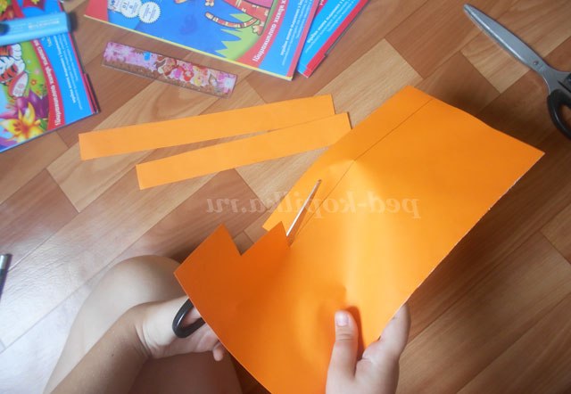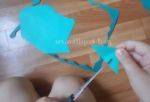 12. Використовуючи ножиці, обрізаємо куточки у тулуба і отримуємо трикутник: наш хвостик теж готовий.