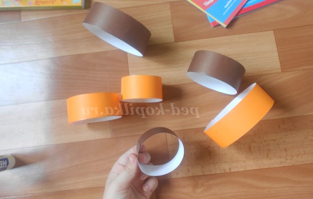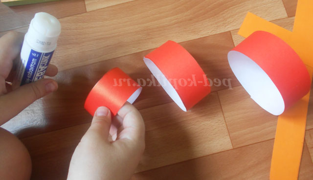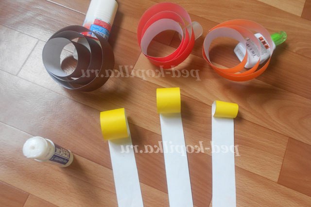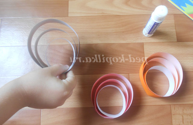 7. Склеюємо за три колечка разом, починаючи з великого, потім середнього і, нарешті, - маленький.