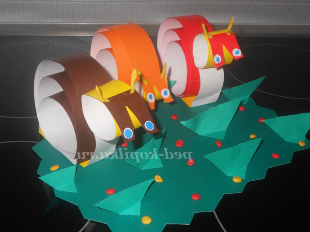 4. Аналогічно, використовуючи інші кольори паперу, виготовляємо основи для другої і третьої равликів.