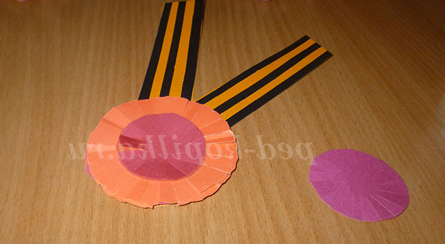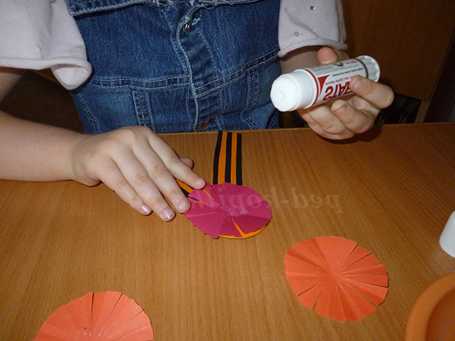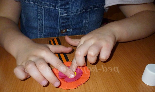 5. Вирізати 3 кола меншого розміру іншого відтінку, зробити надрізи, наклеїти.