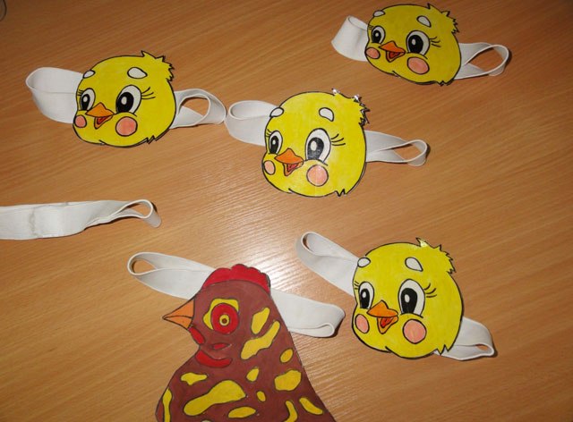Діти зображують курчат, а вихователь - квочку. На одній стороні майданчика обгороджене місце - будинок, де знаходяться курчата за квочкою (натягується мотузка між стійками). Збоку, осторонь, поміщається «великий птах». Квочка подлезает під мотузку і відправляється на пошуки корму. Вона кличе курчат - «ко-ко-ко». За сигналом усі курчата подлезают під мотузку, біжать до наседке і разом з нею гуляють по майданчику. Вихователь каже - «великий птах», всі курчата біжать додому. (Тимофеєва О.О. Рухливі ігри з дітьми молодшого дошкільного віку)