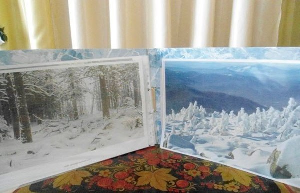 - Репродукції картин з зимовими пейзажами, різними за колоритом і настрою виставка книг по темі «Зима», різних за змістом.