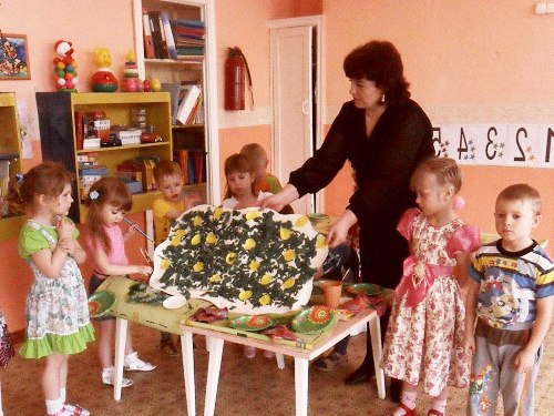 - Вправляти вміння працювати колективно в нетрадиційній техніці, використовуючи обрывную аплікацію;