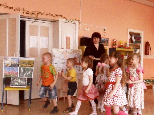 В-ль: Давайте пограємо, покажемо, як весна до нас іде!