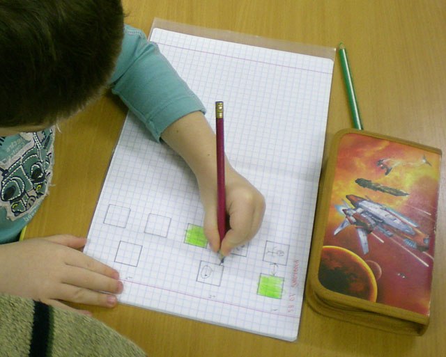 Робочі зошити з намальованими вісьмома квадратами, олівці.